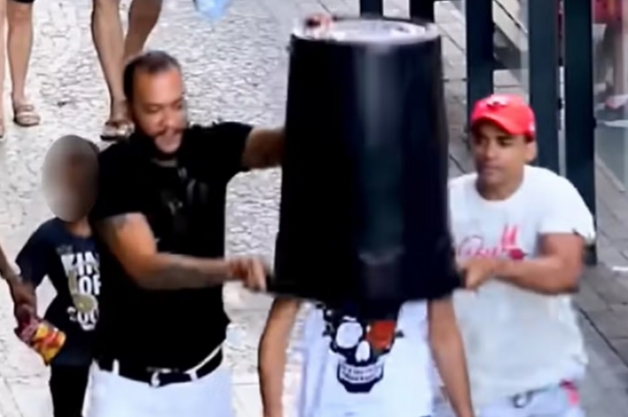 Um dos alvos da "pegadinha" do balde foi um rapaz